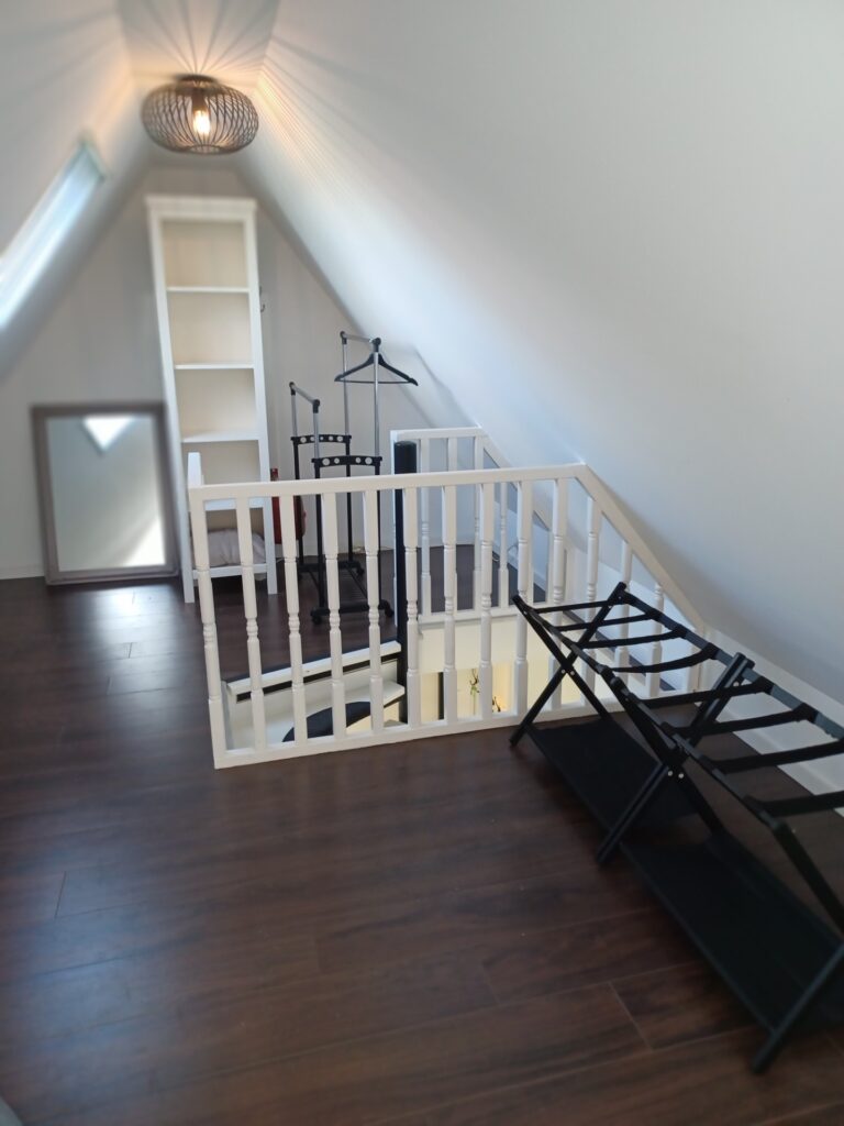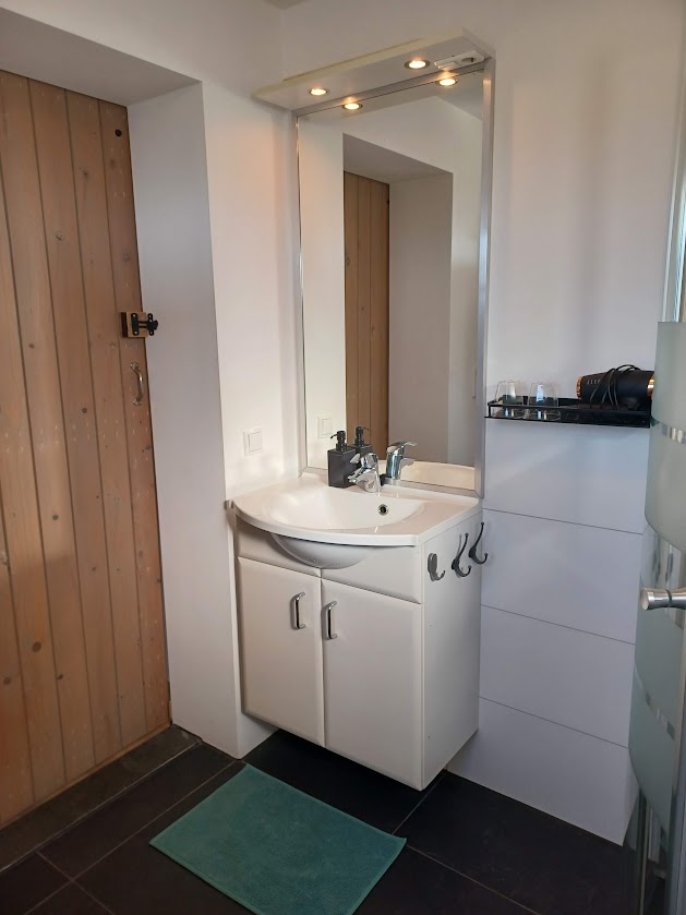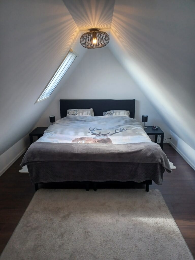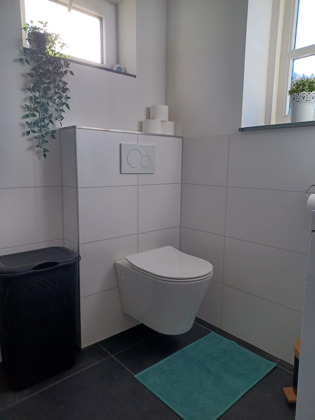 Beneden is een mooie nieuwe en stijlvolle slaapkamer gerealiseerd met een XL boxspringbed (220cm lang) en een complete badkamer met douche, toilet, wastafel en zelfs een wasmachine en droger die u kunt gebruiken. Het huisje wordt verwarmd door centrale verwarming.