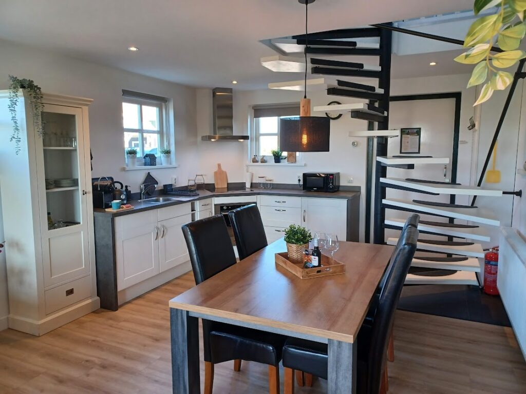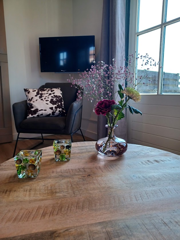 In de woonkamer staat een hoekbankstel, stoel en eettafel met stoelen. De ruime keuken is voorzien van diverse apparatuur zoals een magnetron en oven, elektrische kookplaat, waterkoker en een Nespresso capsule-apparaat. Kortom voorzien van luxe zult u genieten van een ontspannen en zorgeloos verblijf.